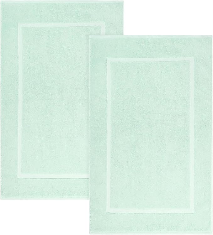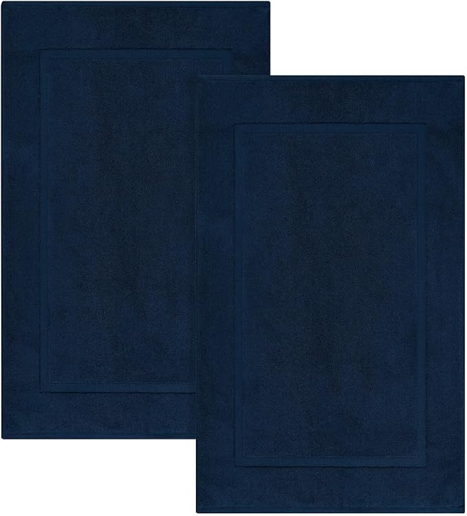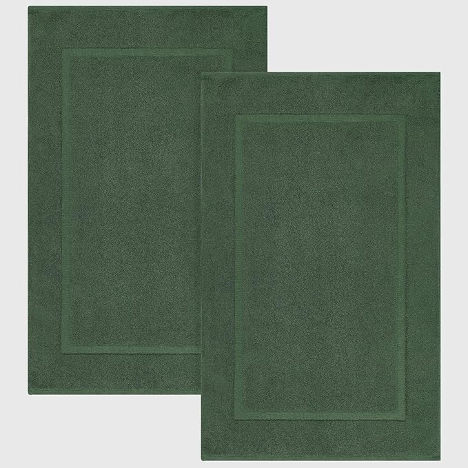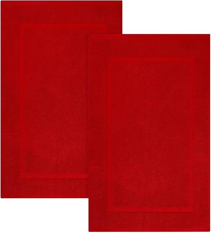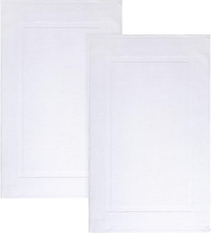 - DURABLE DESIGN: Made from 100% ring-spun cotton, these banded bath towel mats are highly absorbent and durable to withstand regular machine washing.