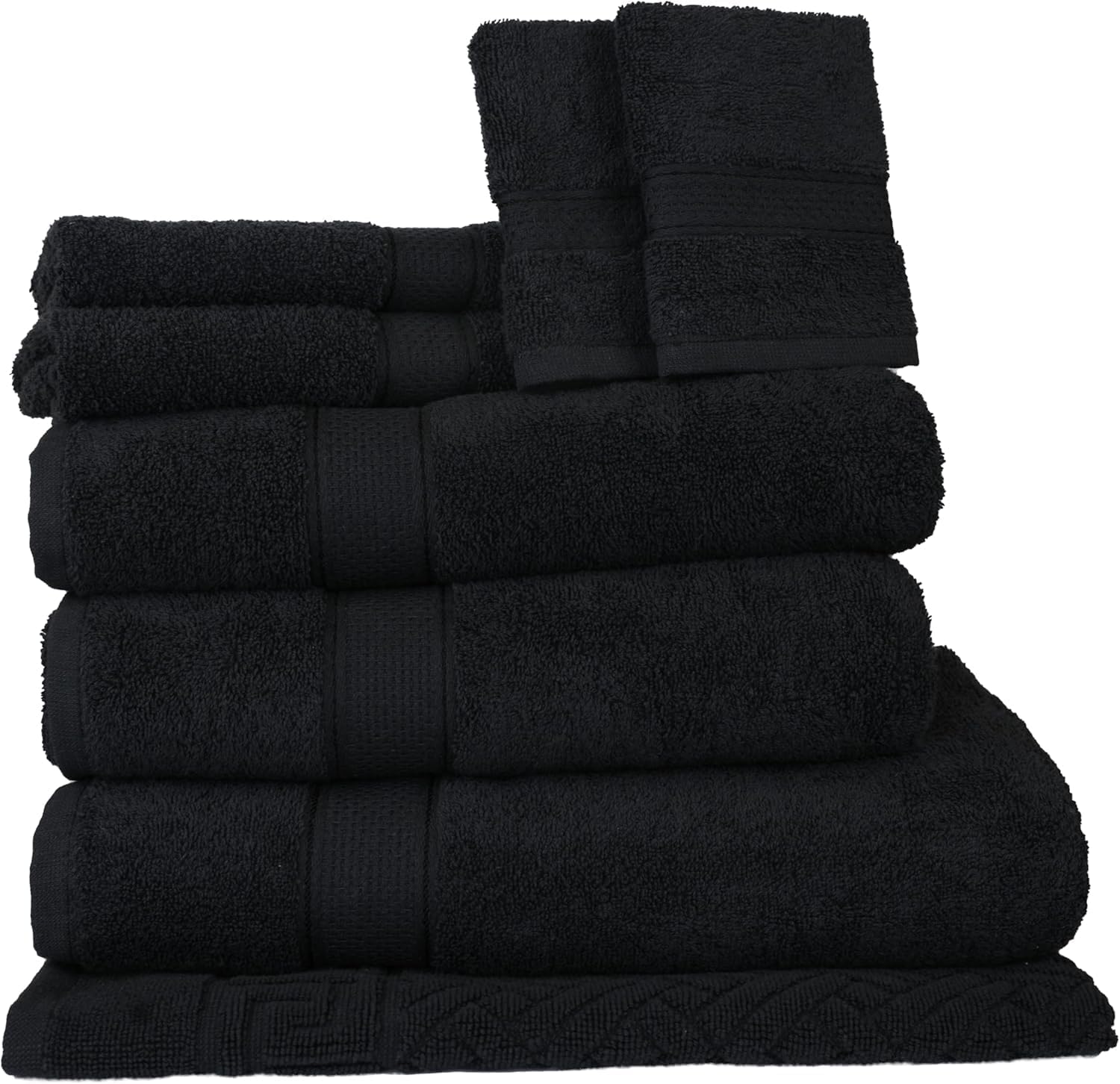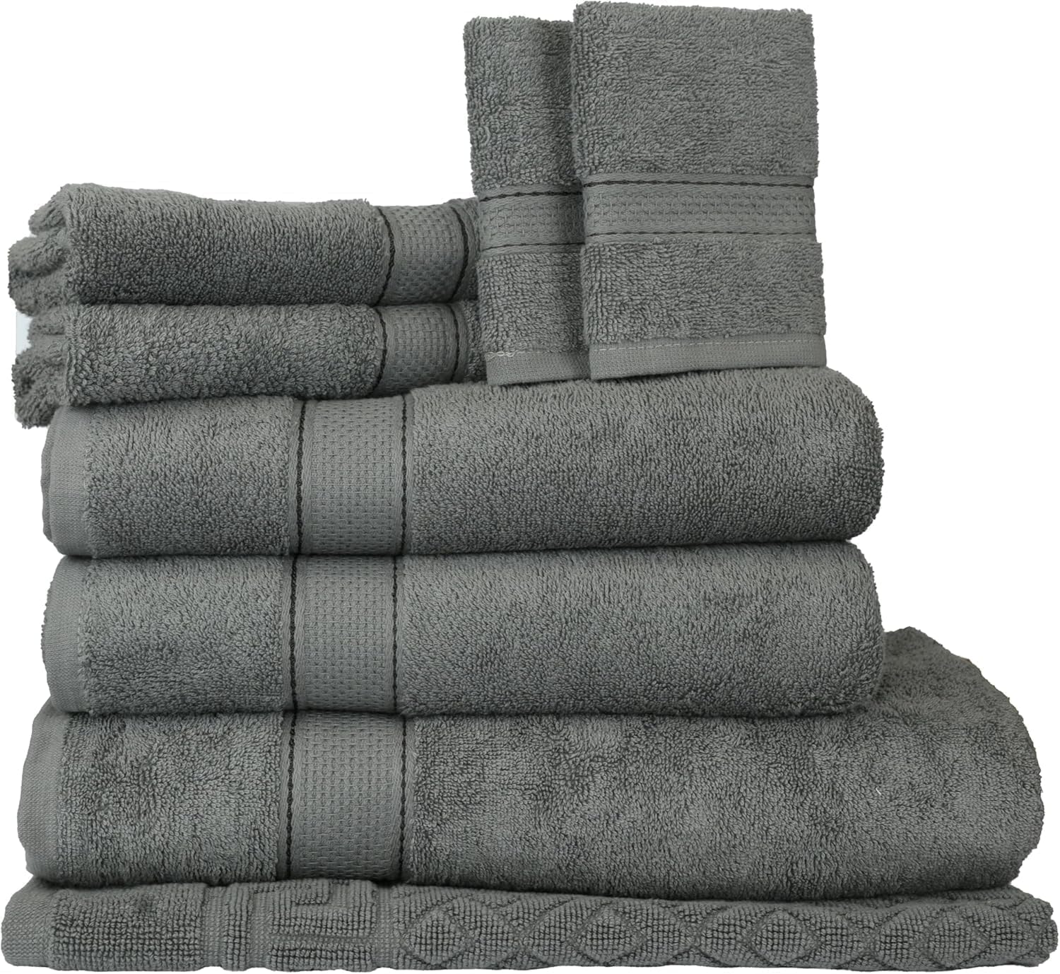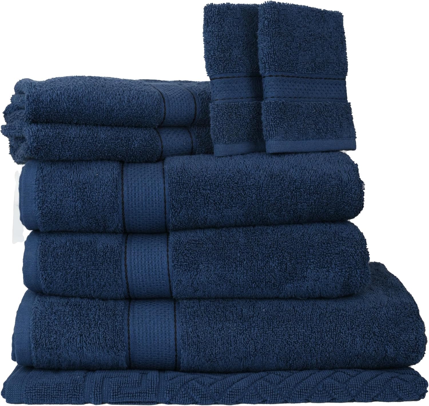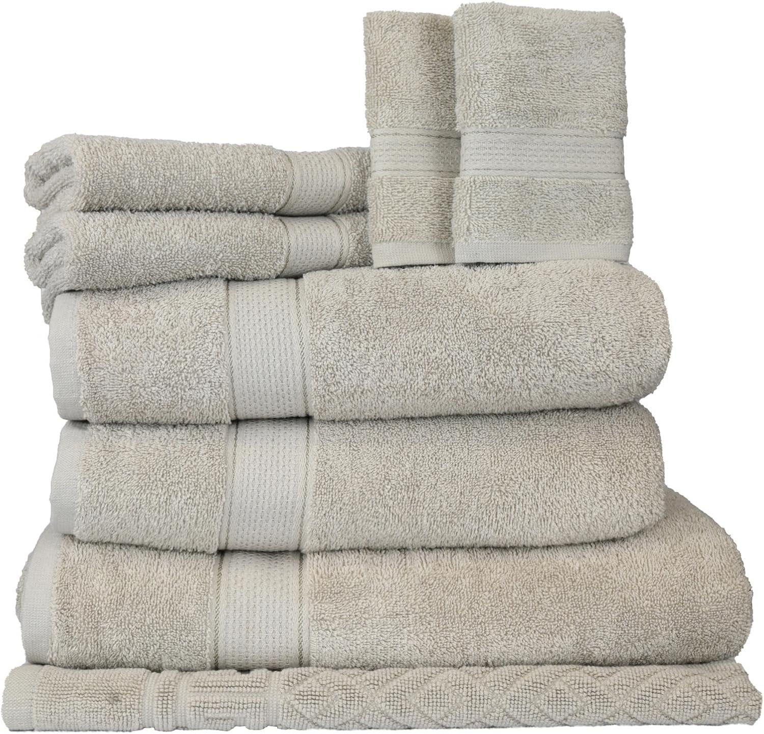 - Complete 8-Piece Towel Set: Includes 1 Bath Sheet (30″x60″), 2 Bath Towels (27″x54″), 2 Hand Towels (16″x28″), 2 Washcloths (12″x12″), and 1 Bath Mat (20″x30″). A perfect set to upgrade your bathroom essentials or guest bathroom.